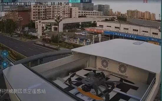 在新區(qū)有這樣一座特殊的“機(jī)場(chǎng)”——它坐落在園興西街的路燈桿上,外形像一個(gè)“四方盒子”?!昂凶印贝蜷_(kāi),停放在里面的無(wú)人機(jī)即可啟動(dòng)騰空,按設(shè)定航線執(zhí)行巡檢任務(wù)。