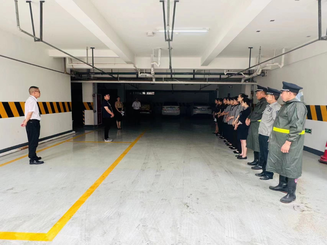 本次演練主要模擬強降雨導致酒店地下室排水溝泄洪困難,雨水倒灌至地下停車場的險情。隨著一聲令下,按照應急預案流程,險情逐級上報,各應急小組有序開展防汛工作,在最短時間內控制住險情。